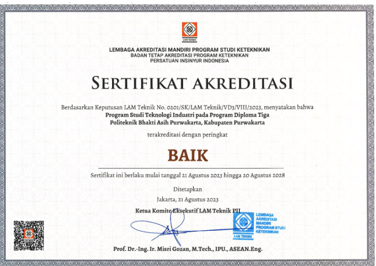 Program Studi DIII Teknologi Industri telah mendapatkan Akreditasi Institusi: BAIK, untuk penilaian akreditasi institusi yang dilakukan oleh Oleh Lembaga Akreditasi Mandiri Pendidikan Tinggi Kesehatan Indonesia (LAM-PTKes) pada tahun 2023.